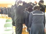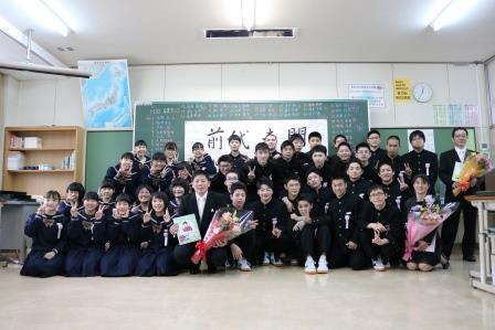 卒業式を明日にひかえて、後期生徒会役員の3年生4名が退任のあいさつを行い、それぞれ自分が掲げた公約の成果について、思いを語ってくれました。最後に全校生徒から、感謝の思いのこもった大きな拍手を受けて、全ての役目を終えました。