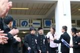 3年の先生へ感謝を込めて 生徒玄関で これが最後の見送り
