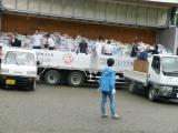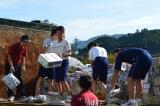 除草は大勢で           草運びが、また大変       段ボールには女子が奮闘