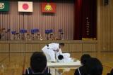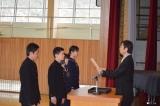 生徒会長をはじめ4名に任命証が交付されました。4名とも邑知中学校をリードする責任の自覚を感じさせる真剣な表情でした。その後の一人一人の就任挨拶は、全員が誠実に役職を果たそうとする意欲を十二分に感じさせる立派なものでした。