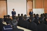 開会挨拶「しっかり見て、体験して決めましょう」 部 旗 掲 揚