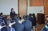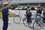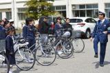 羽咋警察署と飯山・大町両駐在所のお巡りさんや交通安全協会の方々などにご指導をいただきました。全生徒が自転車による事故の原因やその怖さなどについて学びました。その後、1年生が学校周辺で自転車に乗り、安全のためのいろいろな注意事項を教わりました。