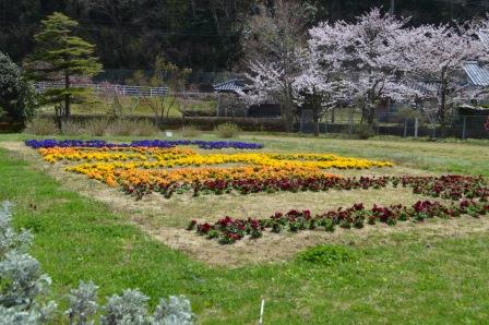 4 パンジーの花壇 (生徒の活動目標キャッチフレーズが表されています。)