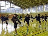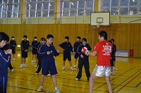 合同トレーニングでキックボクシングエクササイズを行いました。講師の月田享宏先生の指導で約1時間半,楽しみながらもかなりの運動量のキックボクシングを楽しむことが出来ました。