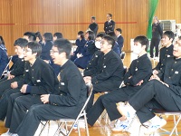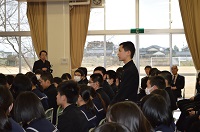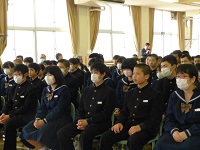 2年生対象の「立志の集い」を1年生も交えて開催しました。6名の2年生が代表して作文を発表しました。それぞれが、「今の自分の思い」を堂々と発表しました。参加した生徒達は、大人に向けての新たな一歩を踏み出せたように思います。