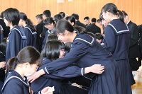 卒業式を明日に控え,1,2年生主催で「3年生を送る会」を行い,歌とメッセージ,スライドショーをプレゼントしました。3年生と共に生活できる日も残り一日となり、全員が寂しさを募らせたようでした。