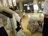 次々と運び込まれるアルミ缶   どんどん計りましょう。        重さは?
