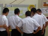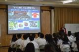 気象庁の予測によると「2100年の日本の夏の最高気温は40度を超える」という話から始まりました。また、熱中症の原因は気温だけではないことなど、興味深く、分りやすい説明が行われました。生徒は自分たちに大いに関係のあることなので大変真剣に耳を傾けていました。