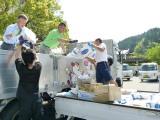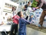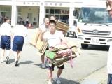 新聞紙を荷台の上まで!    よいこらしょっと!       女子も頑張る!