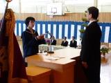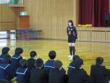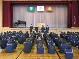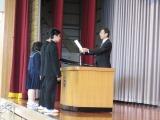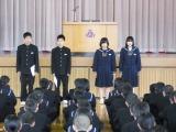4名の生徒会役員に任命証が手渡されました。4名とも、その責任を自覚し真剣な表情で受け取りました。その後、全校生徒に向かって就任挨拶を行いました。