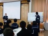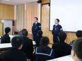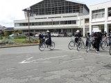 飯山駐在所、大町駐在所や交通安全協会の方々などのご指導で行いました。全校生徒が食堂で自転車の安全な乗り方などの講義を聞きました。その後、1年生が実際に校地周辺を自転車に乗って走り、いろいろな注意事項を教わりました。