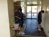 下駄箱一つ一つを丁寧に 力を入れてゴシゴシ!