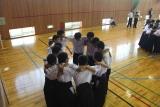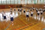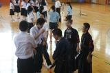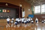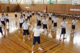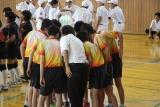 郡市新人総体の激励会が行われました。新チームになって暑い夏の間頑張ってきました。その成果が試されるときです。3年生が応援リーダーとして、また、円陣を組んでの気合い入れにと後輩たちを応援してくれました。
