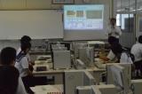 3年生を対象に羽咋工業高校の先生による授業が行われました。電子機械科の授業で、LEDライトをコンピュータプログラムで制御するという内容でした。授業始めの理論の講義は難しく、できるかとても不安でした。実際にやってみると、全員が自分の考えた通りにライトを点滅させることができ、とても楽しい時間となりました。