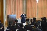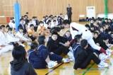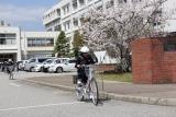 4月9日(木)今年も交通事故「0!」を願って交通安全教室が開かれました。羽咋警察署、飯山、大町両駐在所の警察官の方々や交通安全協会の方々の協力を得て、全校生徒に交通安全に関する講義、 1年生には自転車の実技指導が行われました。