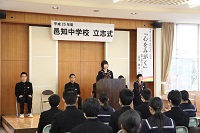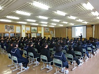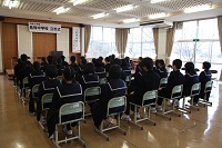 2014年2月14日 14時00分 立志式が行われました。2年生を代表し,6人の生徒が立志を迎えるにあたっての決意を表明しました。参加した2年生は,将来の決意や目標などを明らかにし,大人になる自覚を深めました。