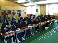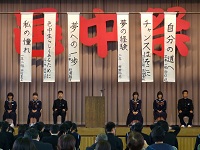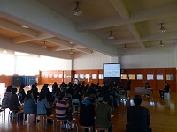 2013年11月8日 09時30分 夢の語らい『青春トーク』が行われました。邑知中学校のOBのかた2名が来てくださり、今の職業に就いたきっかけや仕事のやりがい等を話していただきました。また、生徒が将来について悩んでいることなどの質問にも答えていただき、 将来のことを具体的に考えるきっかけになったのではないでしょうか。
