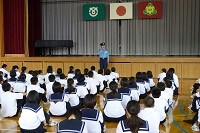 今回は不審者が侵入した場合を想定して行われました。「おはしも」を意識して取り組めました。また,防犯教室では羽咋署から警察官の方が来てくださり,身を守るために心がけることを教えていただきました。