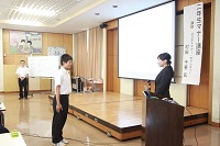 ビジネスマナー・セクレタリーの村田千春先生を講師にお招きして、わく・ワーク体験に向けたマナー講座を実施しました。先生は皇室アテンドや海外VIPアテンドなど、数々の経験を持つ「接遇のプロフェッショナル」です。マナーの基本5原則である①挨拶②表情③身だしなみ④言葉遣い⑤態度について、ペアワークを交えながら学びました。わく・ワーク体験で学んだことを生かすことができるかがためされます。