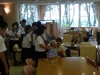 3年生のボランティアでおうちの里に訪問させていただきました。歌と太鼓の披露をし,アンコールもいただき,短い時間でしたが楽しい時間を一緒に過ごさせていただきました。おうちの里のみなさんありがとうございました。