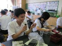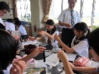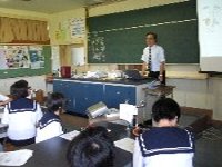 羽咋工業高校の理科の先生に来ていただき,2年生に備長炭電池の授業をしていただきました。備長炭と食塩水で電池を作り,豆電球を光らせる実験で,電気が生まれる仕組みを楽しく学ぶことができました。