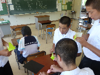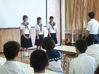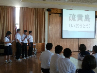 暑い夏が続いていますが,みんな元気に登校しました。激励会では全国中学生弓道大会の激励会でエールを送りました。チーム邑知の代表として頑張ってきてくださいね。また,生徒会の主催で平和集会が開かれました。硫黄島の話や映像を通して平和について深く考え,折鶴にそれぞれの平和へのメッセージを綴りました。戦争の悲惨さや平和の大切さが感じられるとてもいい集会となりました。