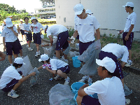 1学期最後の日に,生徒会企画で地域のクリーン活動を行いました。短い時間でしたが,地域の美化に協力できました。その後,レクリエーションとして,クラス対抗借り人競争を行い,力を合わせてがんばりました。イベントの多い一日でしたが,暑さに負けず元気に取り組みました。