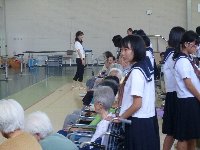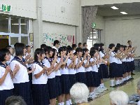 白鳥苑に3年生がボランティアに行きました。短い時間でしたが,喜んでもらえるように,歌の披露と肩もみなどの交流を行ってきました。はじめ中学生は緊張気味でしたが,少しずつ笑顔で交流できるようになっていました。白鳥苑のみなさんありがとうございました。