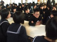 2011年3月29日 14時00分 チーム邑知の離任式が行われました。このたびの異動で多くの先生方とお別れになります。今まで本当にありがとうございました。これからも,私たちチーム邑知の応援団として見守っていてください。