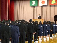 3学期がスタートしました。始業式のあとに,書初め競書会を行いました。一筆一筆,丁寧な文字をみんな書いていましたよ。3年生はいよいよ入試が近くなってきました。1,2年生も学年の締めの学期になりました。元気にがんばりましょう。