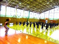 冬場の体力づくりの一環として,恒例のエアロビ第一弾を,インストラクターの川上さんをお招きして行っていただきました。楽しくリズムにのって体力づくりをしました。やっているとあまり感じにくいですが,かなりの運動量です。