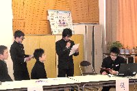 3年生が未来の羽咋を考え,1年かけて総合的な学習の時間での学んできたことの発表会を行いました。羽咋市役所の企画財政課と環境安全課の課長さんにも来ていただき,羽咋市の問題点などから,様々な提言を聞いていただきました。