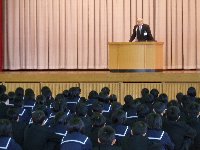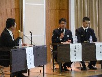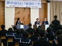 羽咋ライオンズクラブに協力いただき,盤水社代表の中山貴之氏をコーディネータ,本校卒業生の消防士の澤一広氏,警察官の今井隆太郎氏をパネラーとして迎え,後輩のために仕事に関してためになる多くの話をしていただきました。