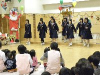 2010年12月27日 10時00分 2年選択の授業で練習したことを邑知保育園で披露してきました。園児のみなんさんに喜んでもらおうと,よく知っている歌など一緒に歌って踊って楽しい時間を過ごしてきました。
