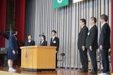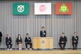 新任の6名の先生方 邑知中の印象はGood!! 生徒代表歓迎の言葉