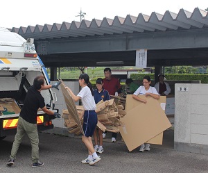 段ボール運びは結構大変! どんどん集まっていきます。 缶もすぐ箱いっぱいに!