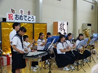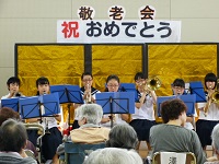 白鳥苑の敬老会にブラスバンド部が出演しました。今回は,3年生が引退してから初めての演奏となりました。