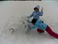 大きな雪だるまを作ったり、雪の上に転がったり、雪合戦をしたりと思い思いに遊んでしました。