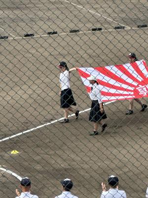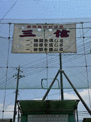 そして、平成20年に作成された野球部の懸垂幕をグラウンドのバックネットに掲げました。