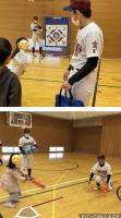 初めはストラックアウトの的まで届かなかった子も最後には的まで届くようになり、1時間程の野球教室でしたが “できた!楽しい“と、友だちと喜び高校生とハイタッチをしていました。