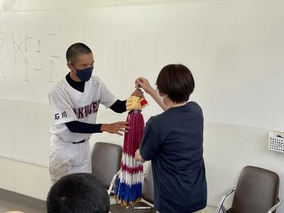 お忙しいなか、林会長(野球部OB会長)が来てくださり激励をいただきました。