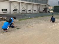 以下は、テニスコート内の清掃および除草作業の様子です。