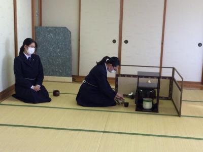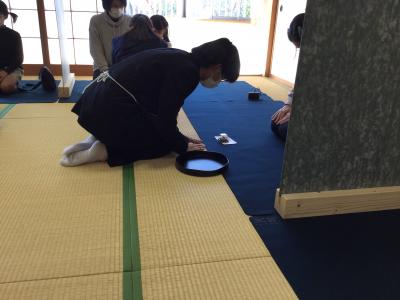 部活動時の部員同士のお稽古とは違い、緊張した面持ちでおもてなしをしました。めったにできない貴重な経験ができ、これからのお稽古にも気合を入れて取り組もうと、気持ちが高まりました。