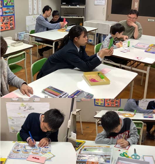 寄宿舎では、5月8日(木)の夕食後に舎生のみんなで集まって、5月11日(日)の「母の日」に向けて、手紙を入れる封筒やお手伝い券などを作りました。みんな真剣な表情で取り組んでいました。