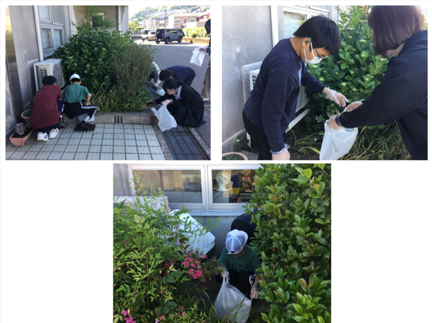 前期の除草作業を行いました。花壇の雑草が取り除かれ、