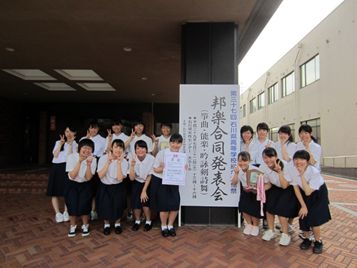 2017年7月27日 13時26分7月22日に行われた石川県高等学校総合文化祭邦楽合同発表会で、3年生3名、2年生10名が「波の戯れ」を演奏しました。優秀校1校・優良賞2校を選ぶ審査の結果、優秀校に選ばれ、平成30年度の全国総文の出場権を獲得しました。