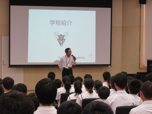 全体会では、学校概要の説明の後、生徒会や放送部員によるビデオやクイズを交えた学校紹介を行いました。その後、部活動の体験や施設の見学を実施しました。
