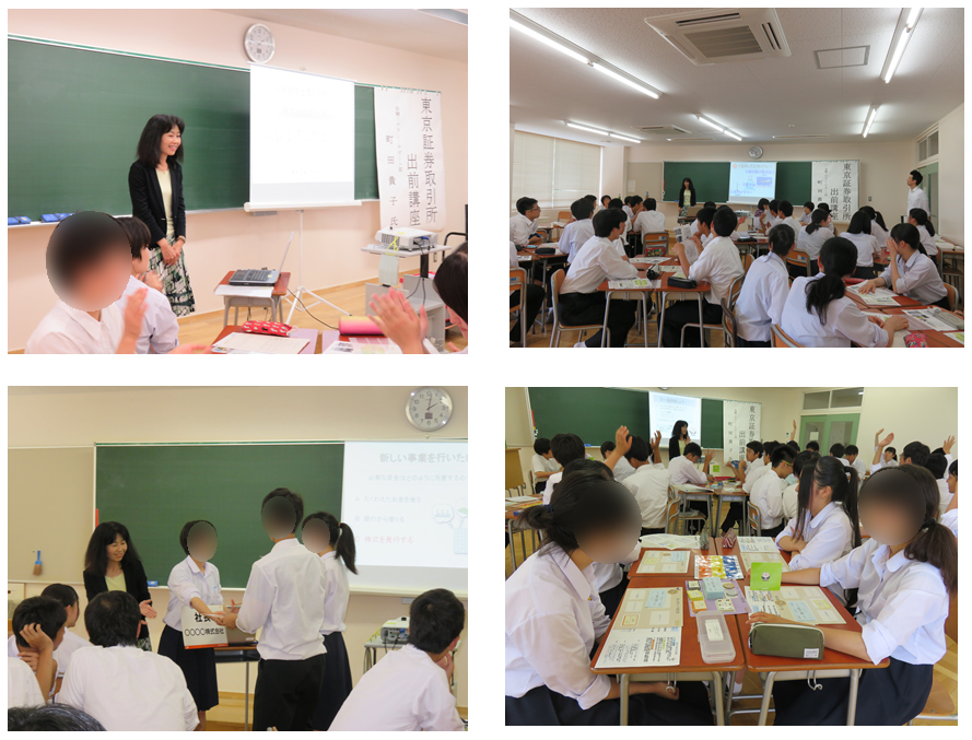 株式会社の成り立ちからその機能、経済や暮らしとの関係についての説明を聞きました。その後、ボードゲーム「ブルザ」を使い、経済ニュースと株価の連動について、株の売買を行いながら体験的に学ぶことができました。