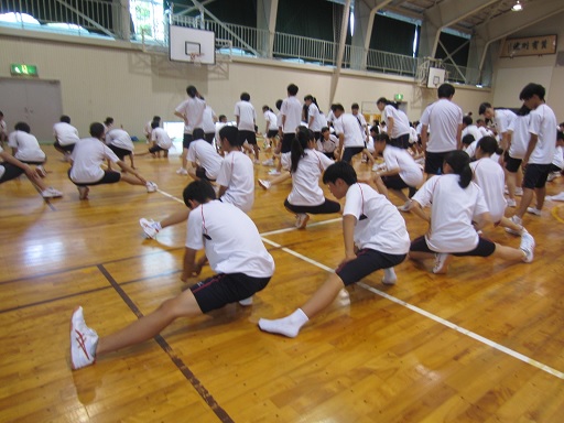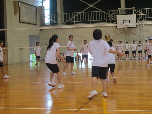 30℃を越える暑い日でしたが、試合を応援する1年生の声で体育館もグランドも、それ以上の熱気に包まれていました。応援の声の大きさでは校長先生から合格点を頂きました。
