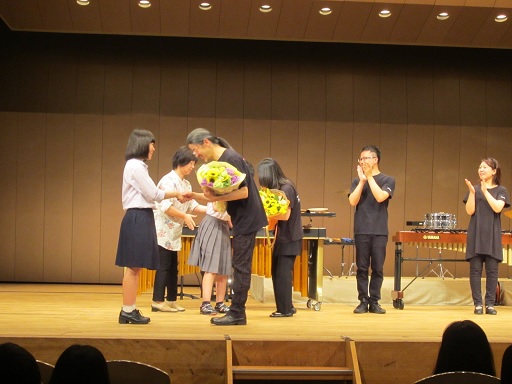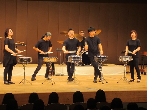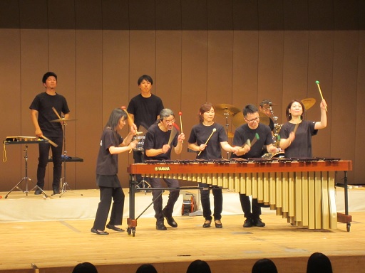 33℃を越える暑い日でしたが、本多の森ホールで打楽器のパフォーマンスを全学年で鑑賞しました。